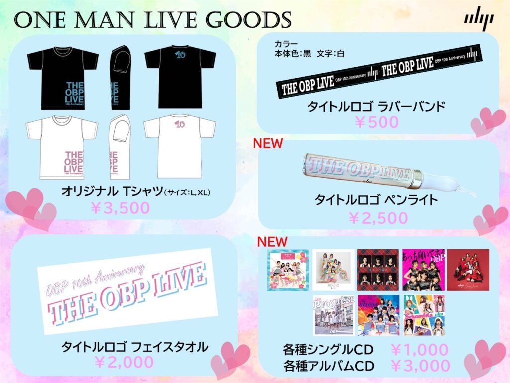 VIP: 前方(椅子あり)、Tシャツ(サイン入り)、タオル、リストバンド、OBPチェキ(ポスター版)+囲みチェキ